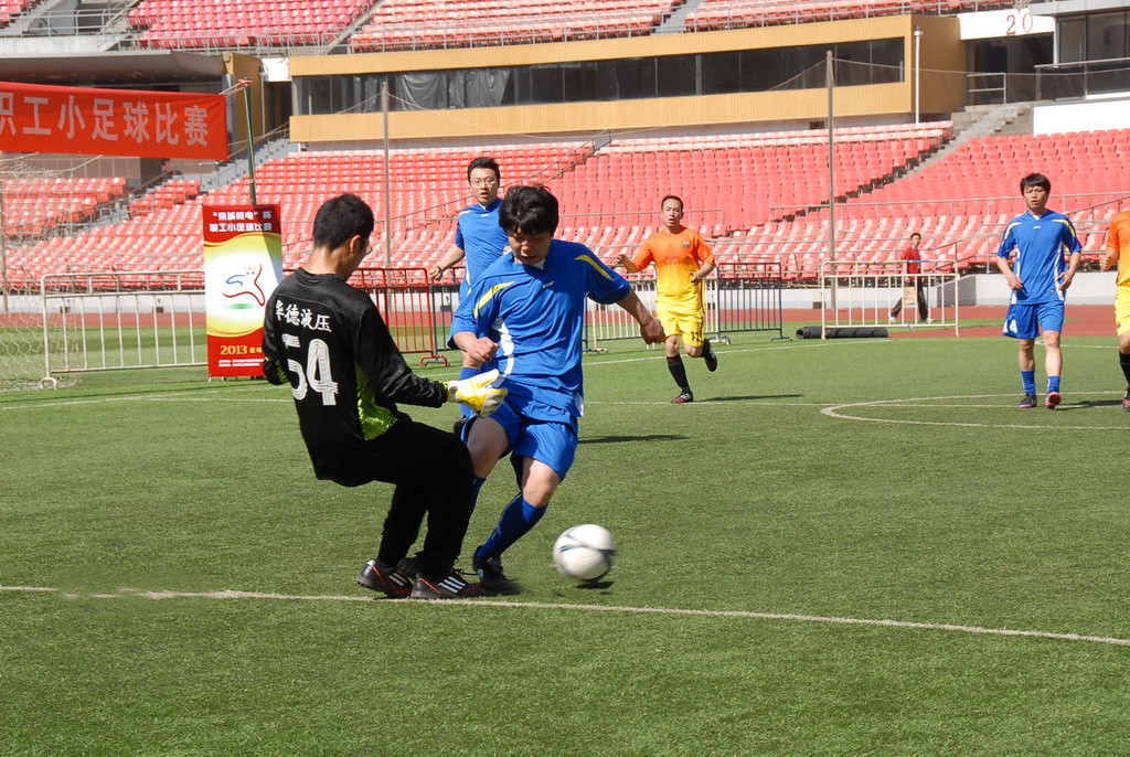 在爭取進(jìn)入四強(qiáng)的比賽中,天海公司足球隊(duì)與北京北重汽輪電機(jī)公司代表隊(duì)展開激戰(zhàn),面對強(qiáng)敵,賽事異常艱辛.在比賽踢成平局后,開始激烈的點(diǎn)球大戰(zhàn),最后北重公司代表隊(duì)以二球險(xiǎn)勝,天海公司與四強(qiáng)失之交臂.盡管沒有拿到四強(qiáng)的入場券,但天海足球隊(duì)的精彩表現(xiàn)得到了組委會和現(xiàn)場觀眾的一致好評。通過比賽,極大地激發(fā)了員工參與足球運(yùn)動的積極性,促進(jìn)了足球運(yùn)動水平的提高。